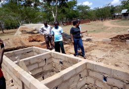 Ukaguzi wa ujenzi wa vyumba viwili vya maabara shule ya sekondari Pandagichiza katika kata ya Pandagichiza.Kutoka upande wa kushoto Mkurugenzi Mtendaji wa Wilaya Ndg. Bakari Mohaed Kasinyo ,katika...